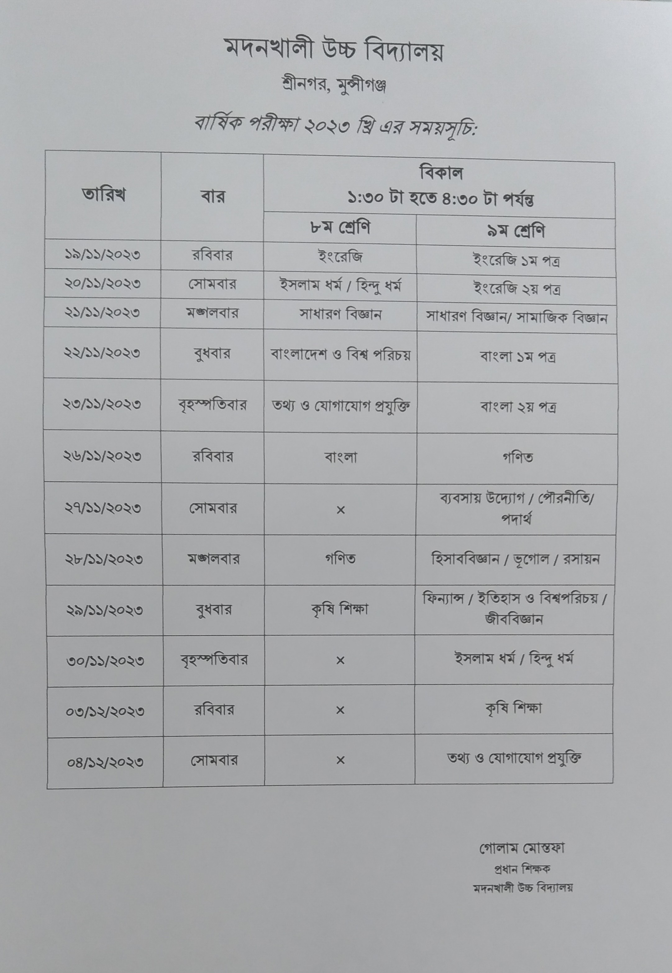 বার্ষিক পরীক্ষা-২০২৩ এর সময়সূচী